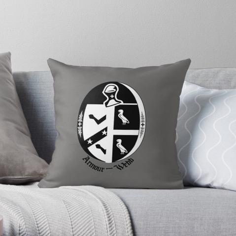 I designed the crest from inspiration of Armour and Webb crests. I wanted something personal that included both parts of myself. I included snapdragons on the outer crescent portion of the crest because they are my favorite flower. I included clovers to balance the design with the clover on the helmet. I used the tradition helmet and elements for the split crest. I took some elements of the family crest away, due to redundancy, such as the extra helmet and the hand. I used art deco inspiration for the overall crest to simplify the design. I wanted a unique and recognizable design for our family crest. For my husband, I designed the Webb family crest. I love both designs, and they are extremely personal to me.
