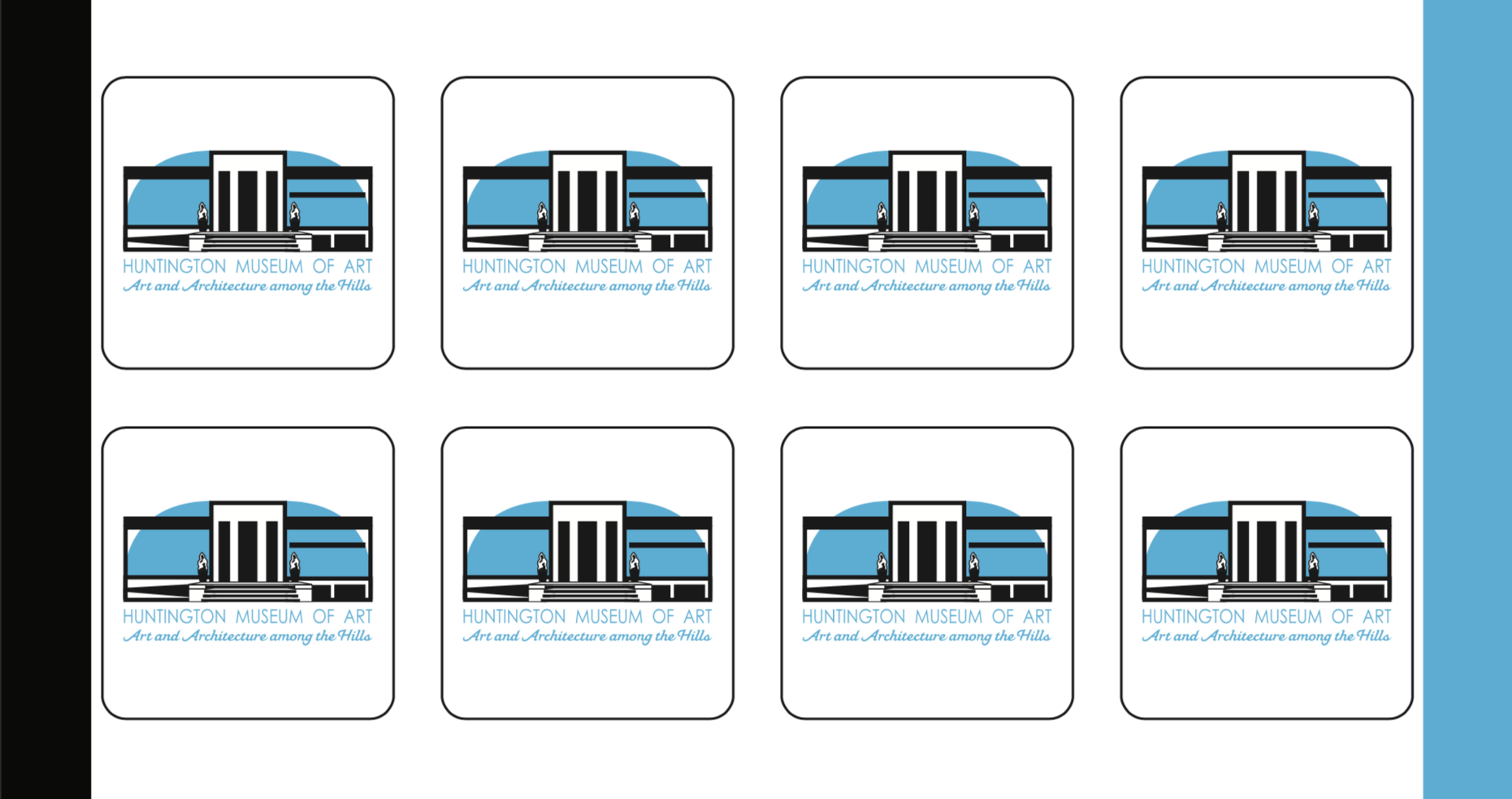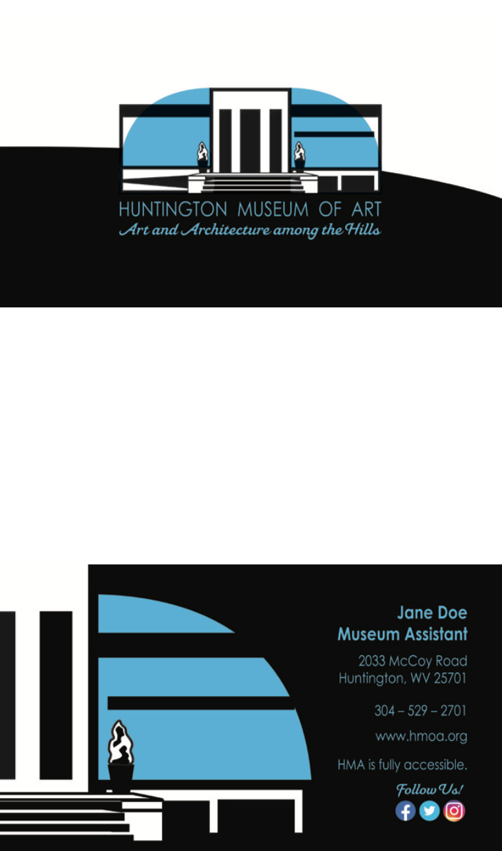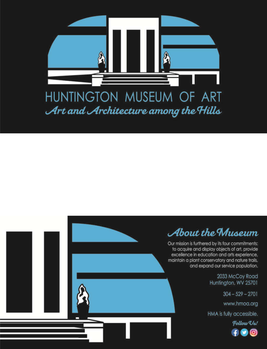 I included logos that were not chosen by the museum for the sake of my design process. The HMA typeface is Century Gothic Pro Regular; this round, thin typeface complements the tall facade of the museum. The slogan typeface is Mahalia Regular represents the rolling hills of West Virginia. The museum, in Huntington, WV, holds architectural importance through designer Walter Gropius.