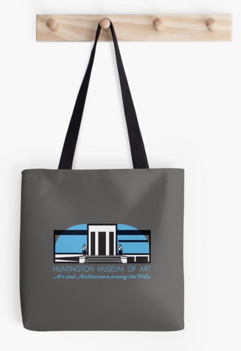 The museum logo is featured at the bottom of this tote. The logo with organic forms can be featured on many other clothing items.