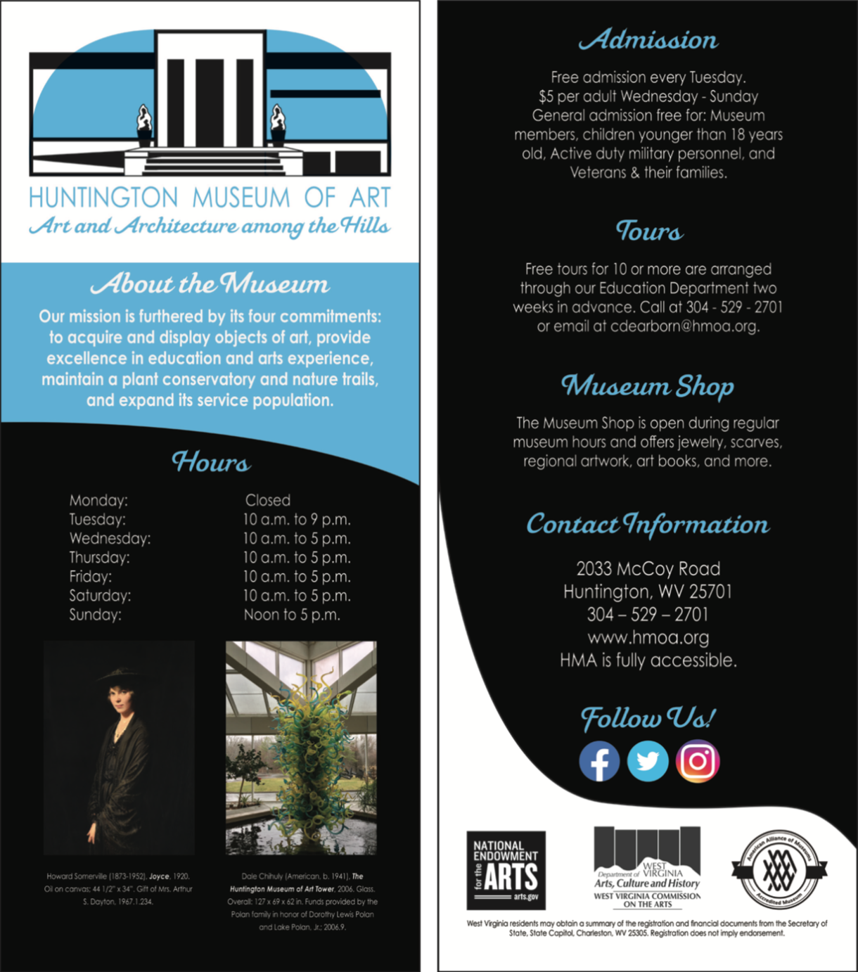 The museum logo is featured on the rack card. The rack card features important visitor information.