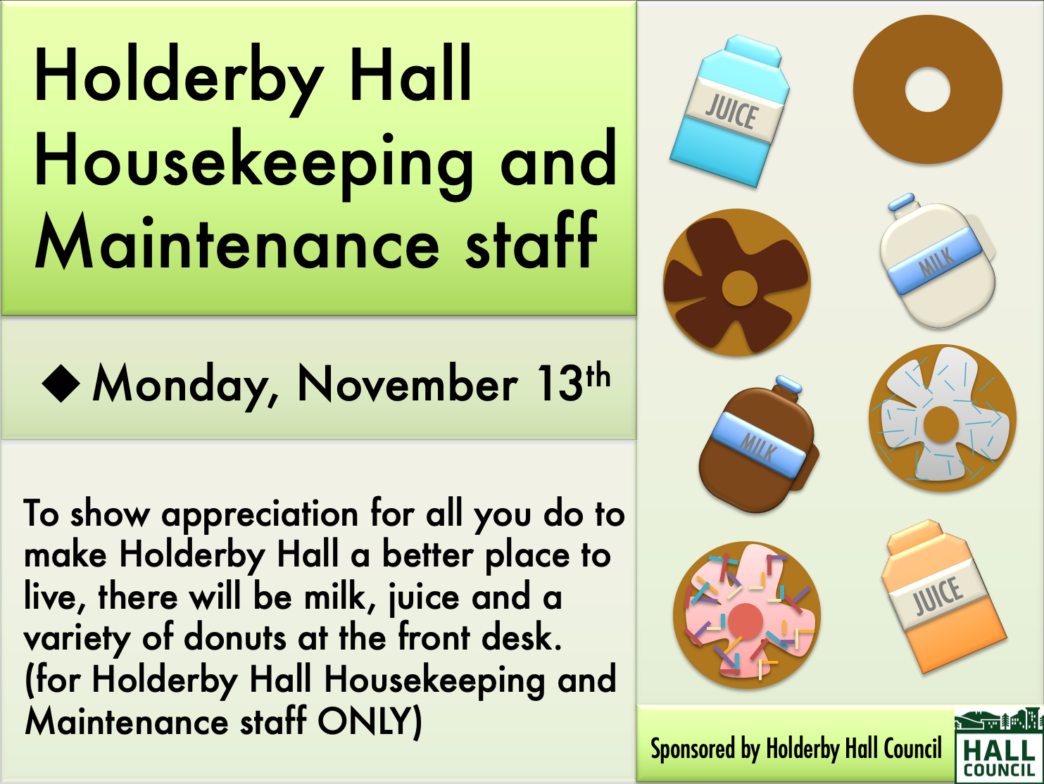 As past president of Holderby Hall Council, I wanted to design the first logo and promotional / marketing materials for HHC. This logo displayed my continuous use of building architecture to enhance logos for business / hall council since 2017.