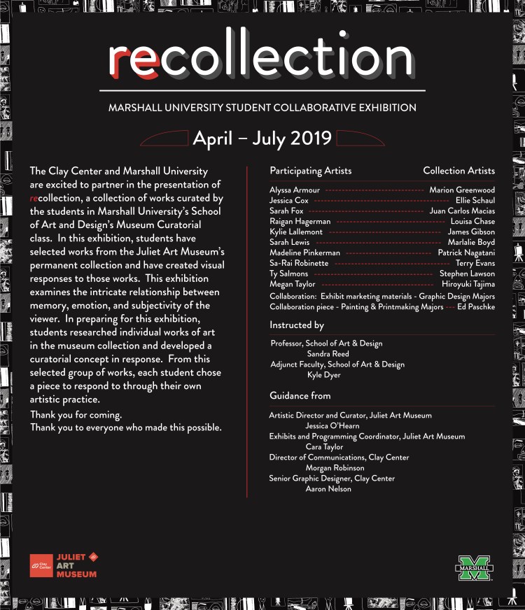 Recollection Collaborative Exhibit Portfolio Placement of Logo on Title Wall Exhibit Entrance Plaque Brochure Share this: Click to share on X (Opens in new window) X Click to share on Facebook (Opens in new window) Facebook Like Loading...